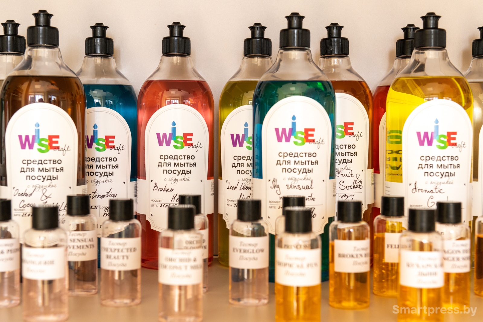 – Нашу продукцию часто берут для детей. Одни мамы выбирают бесцветные варианты и минимум отдушек. Другие приходят в магазин с малышами и ориентируются исключительно на их выбор. Дети по часу могут выбирать жидкое мыло, например. Пока все не перенюхают – не успокоятся, – включатся в разговор химик-лаборант WISEcraft Валерия Талейко.
