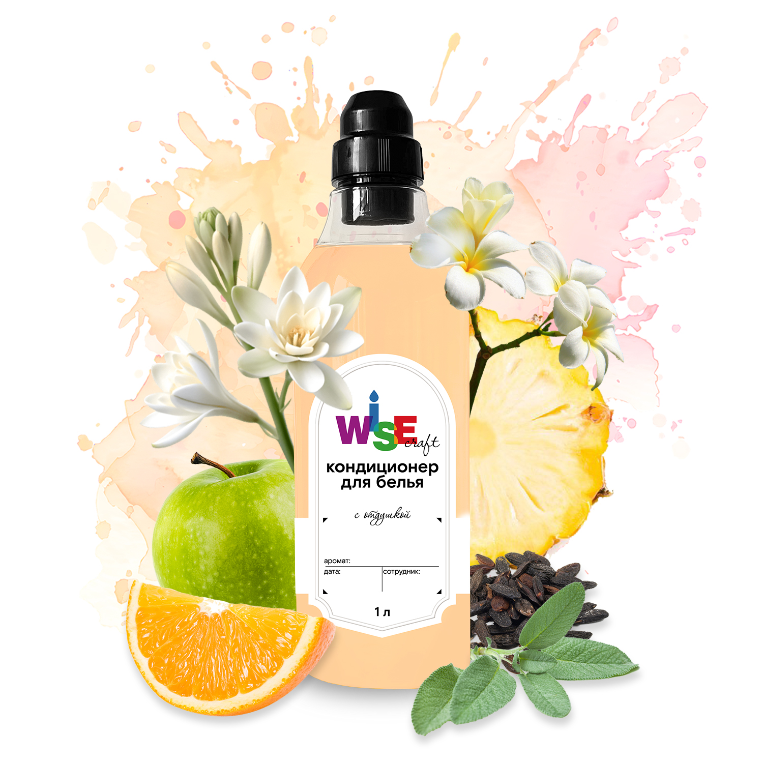 апельсин, листья фиалки, полынь, мускатный шалфей, яблоко, ананас