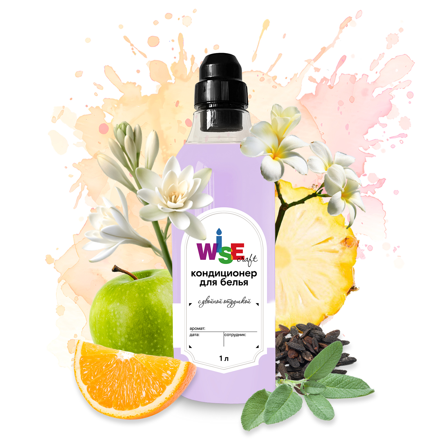 апельсин, листья фиалки, полынь, мускатный шалфей, яблоко, ананас