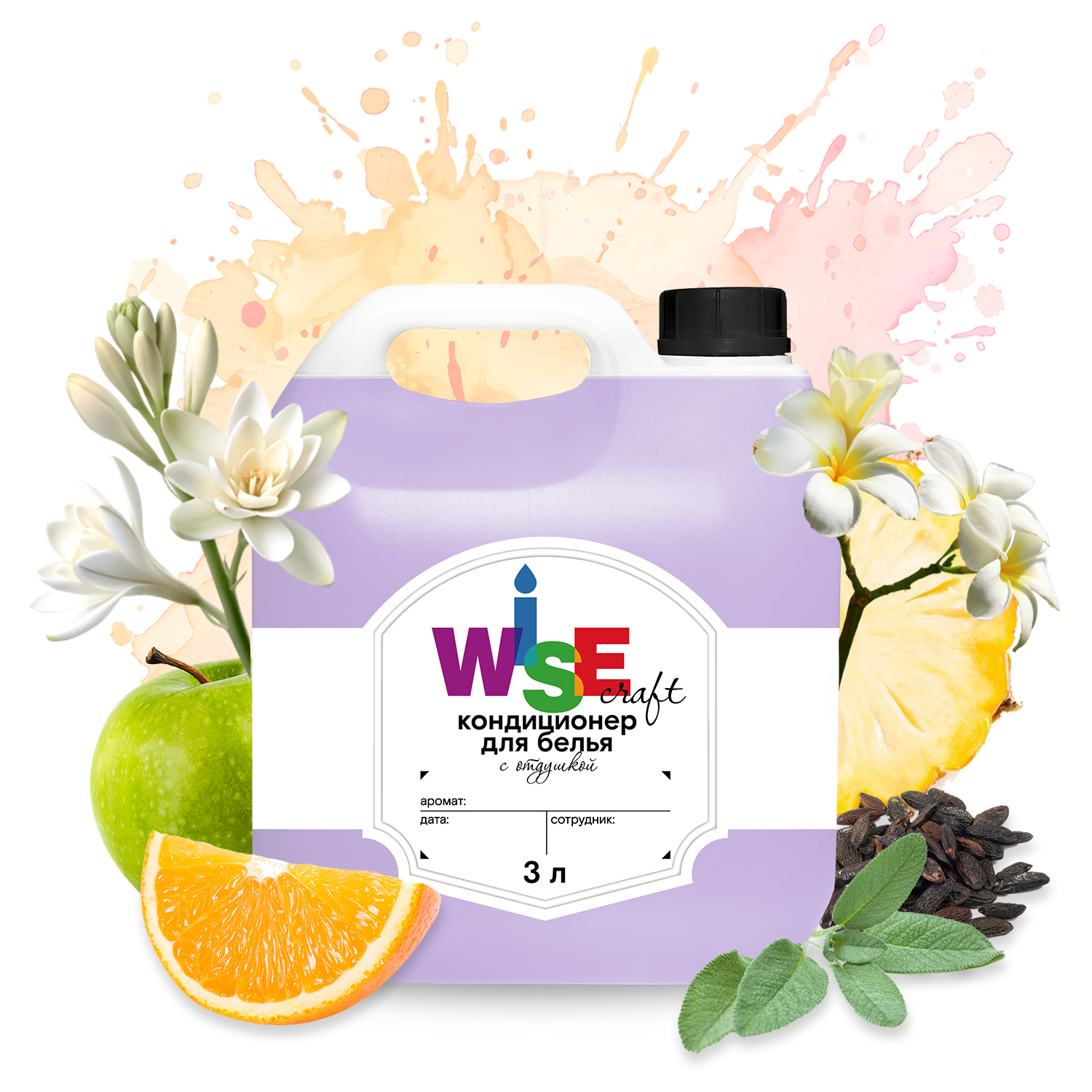 апельсин, листья фиалки, полынь, мускатный шалфей, яблоко, ананас