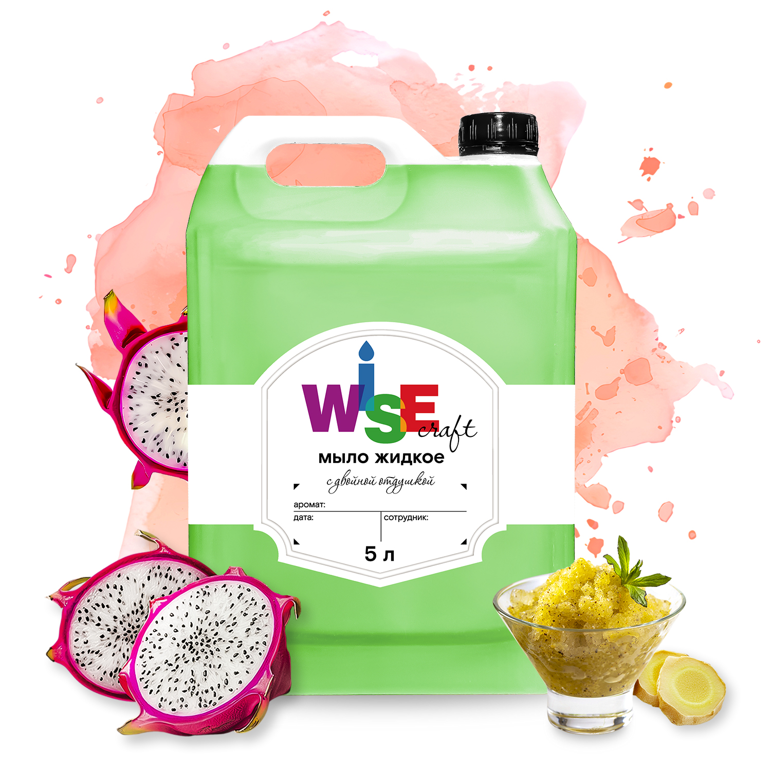 Мыло жидкое DRAGON FRUIT & GINGER SORBET 5 л (зеленый, с двойной отдушкой)