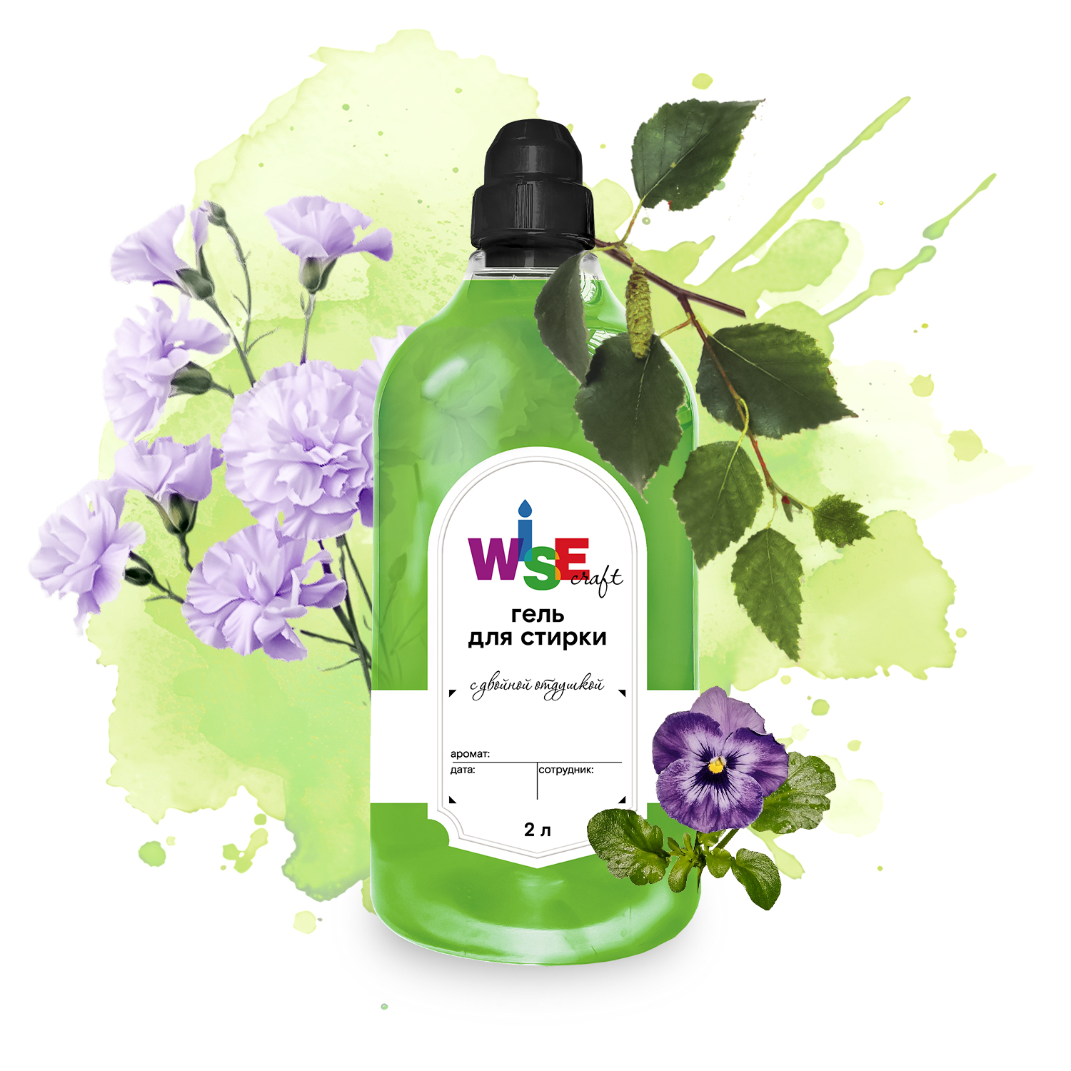 Гель для стирки ECOLEAVES 2 л (зеленый, с двойной отдушкой)