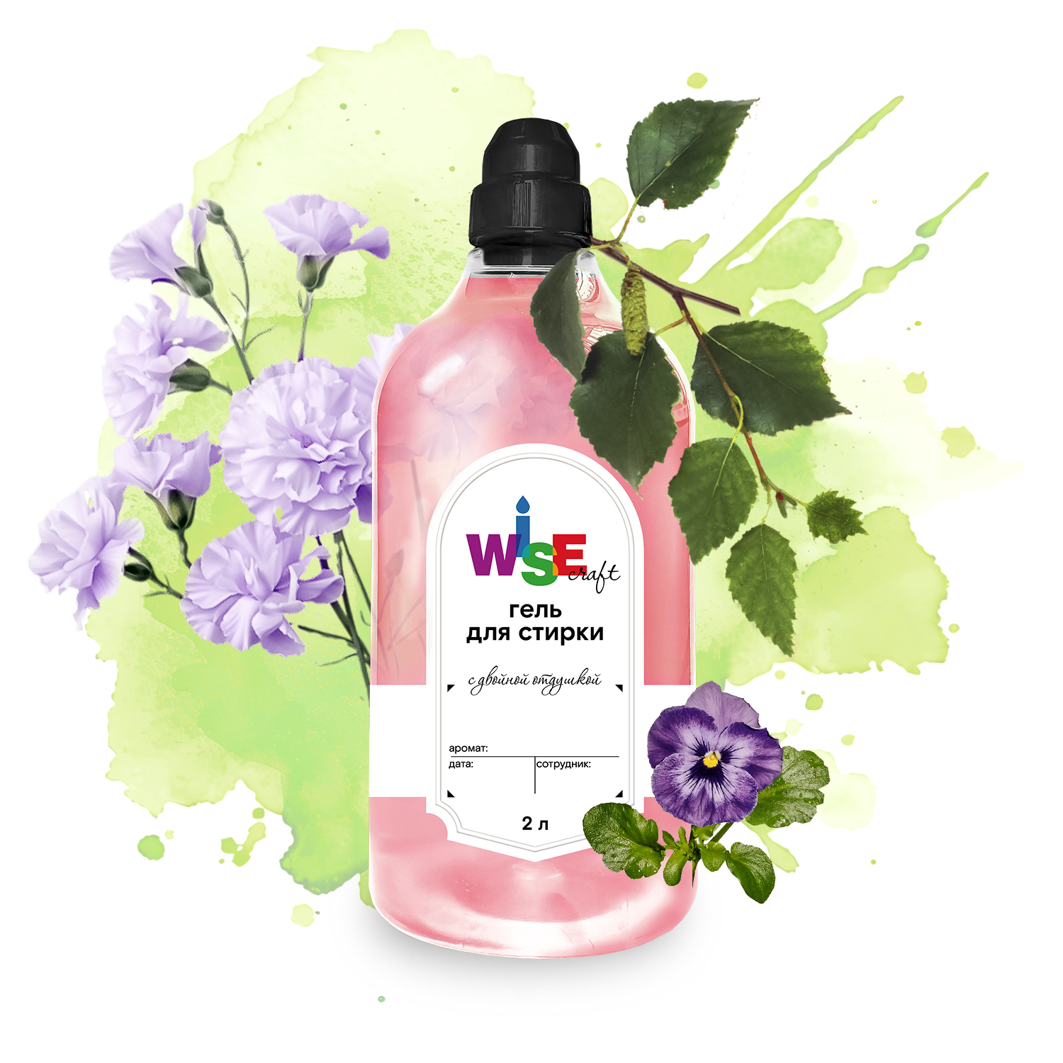 Гель для стирки ECOLEAVES 2 л (розовый, с двойной отдушкой)