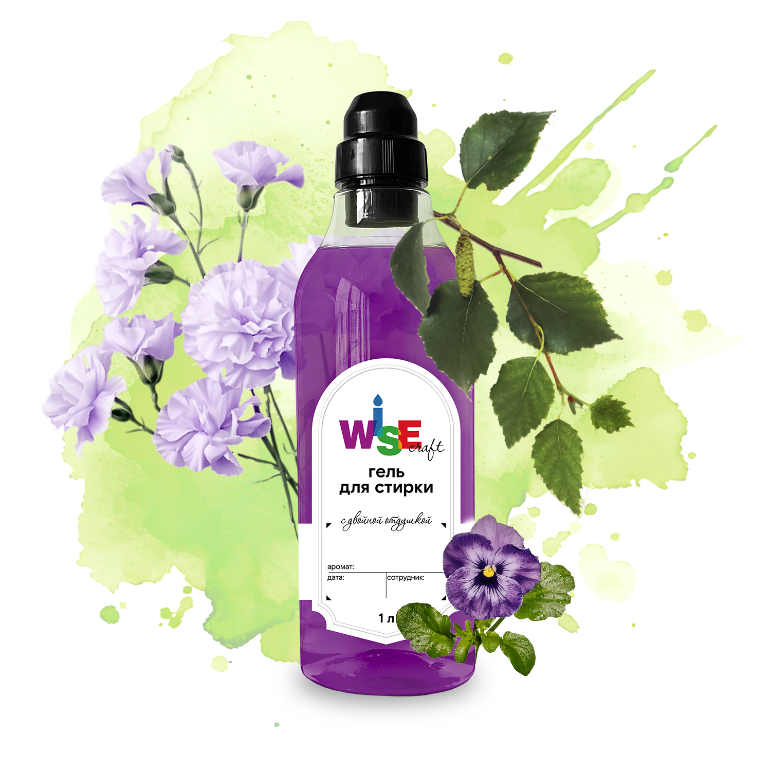 Гель для стирки ECOLEAVES 1 л (фиолетовый, с двойной отдушкой)