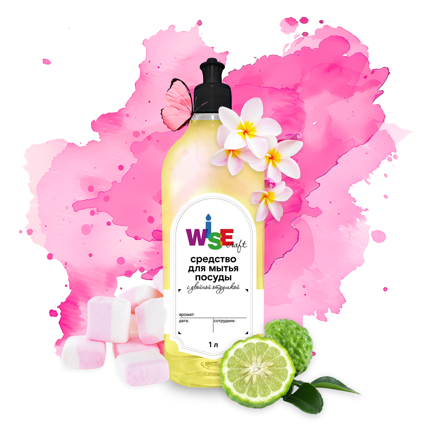 Парфюмированное средство для мытья посуды BUTTERFLY PINK FRAGRANCE от Wisecraft — нежный полет вкуса и чистоты